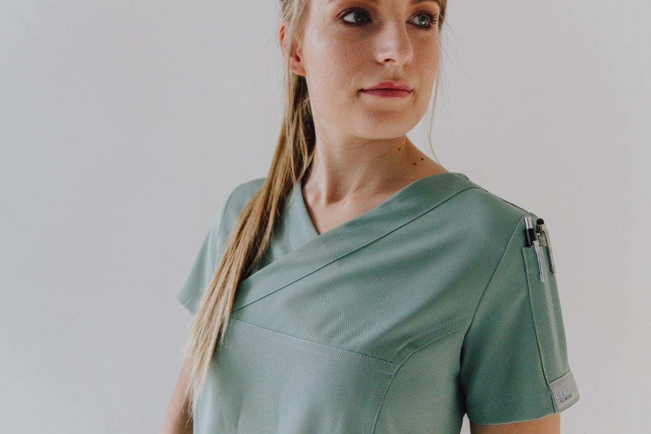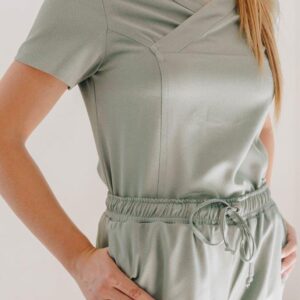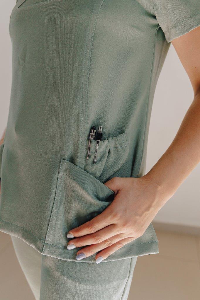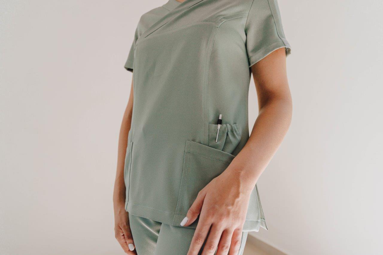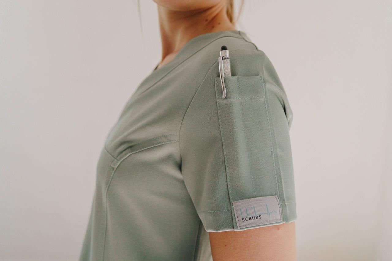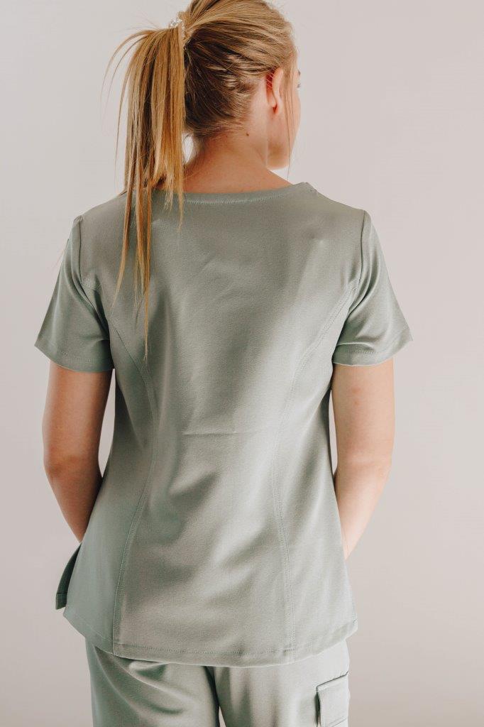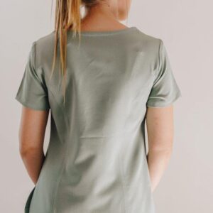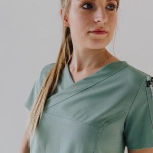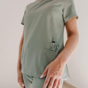 A stylish women’s scrub top designed and cut to fit closer to the body from the chest to the hip. A durable two-way stretch short sleeves top with pen slots on the sleeve and two roomy patch pockets with two interior pockets to keep your keys safe.